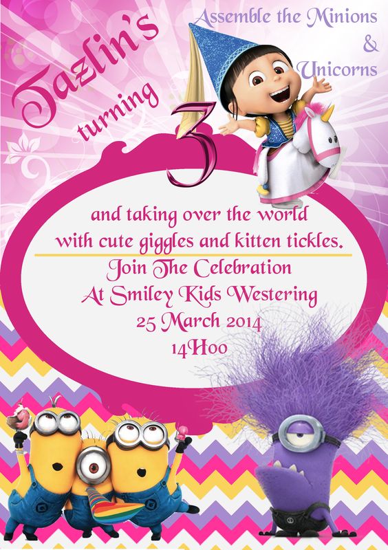Agnes Unicorn Minion Party Invite #Agnes #Unicorn #Minions …