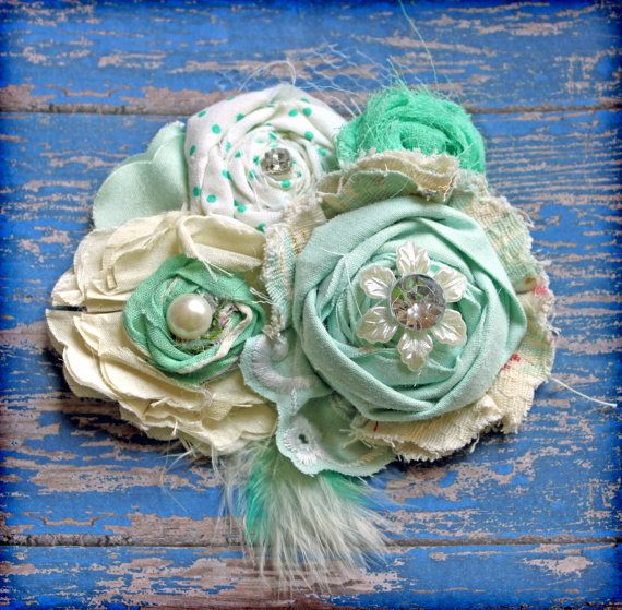 Mint Green, Ivory, Cream Vintage Hair Accessory, Shabby Chic Headband …