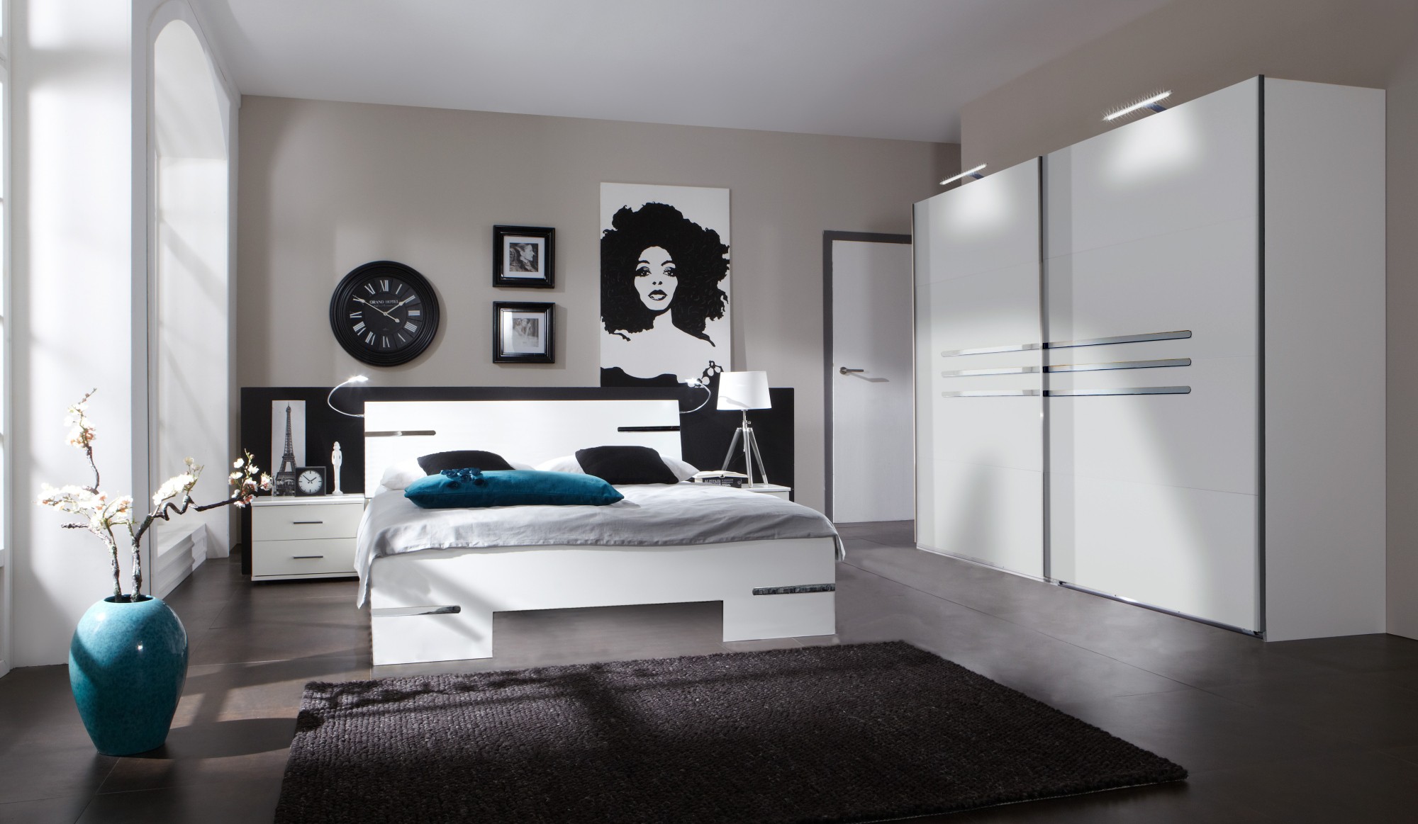 Chambre adulte complète design blanc alpin/chrome brillant Bella III …