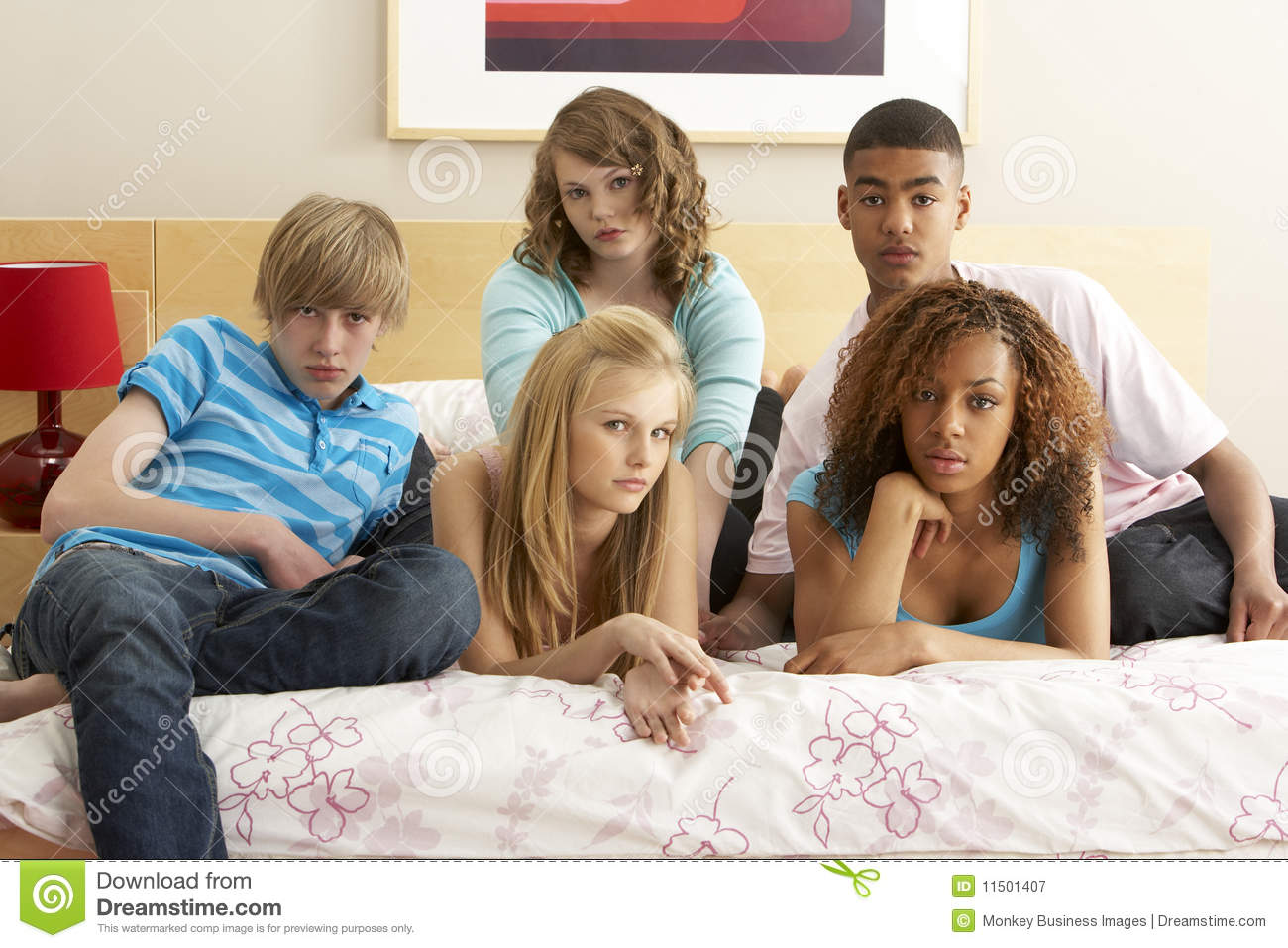 Group Of Five Teenage Friends Looking Bored In Bed Royalty …