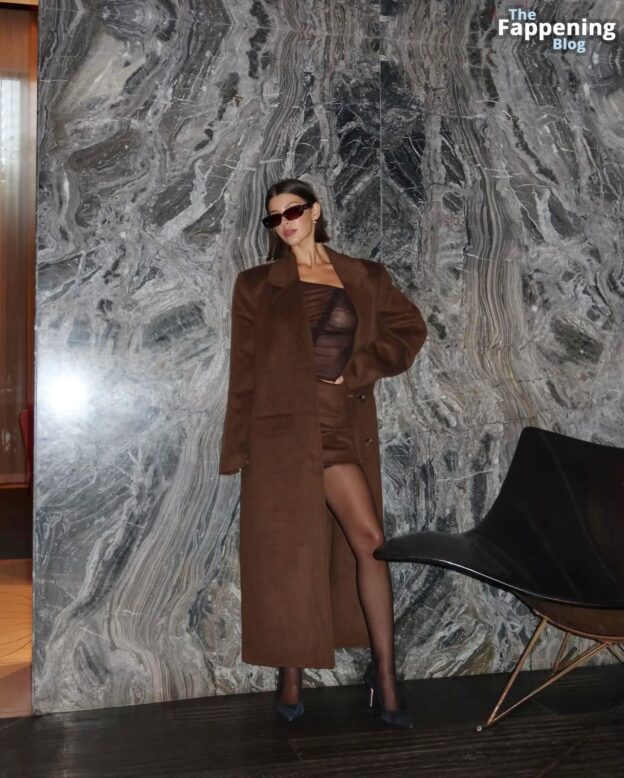 Social media star Ashley Marie Dickerson flaunts her nude tits as she poses braless in a new shoot for Revolve.