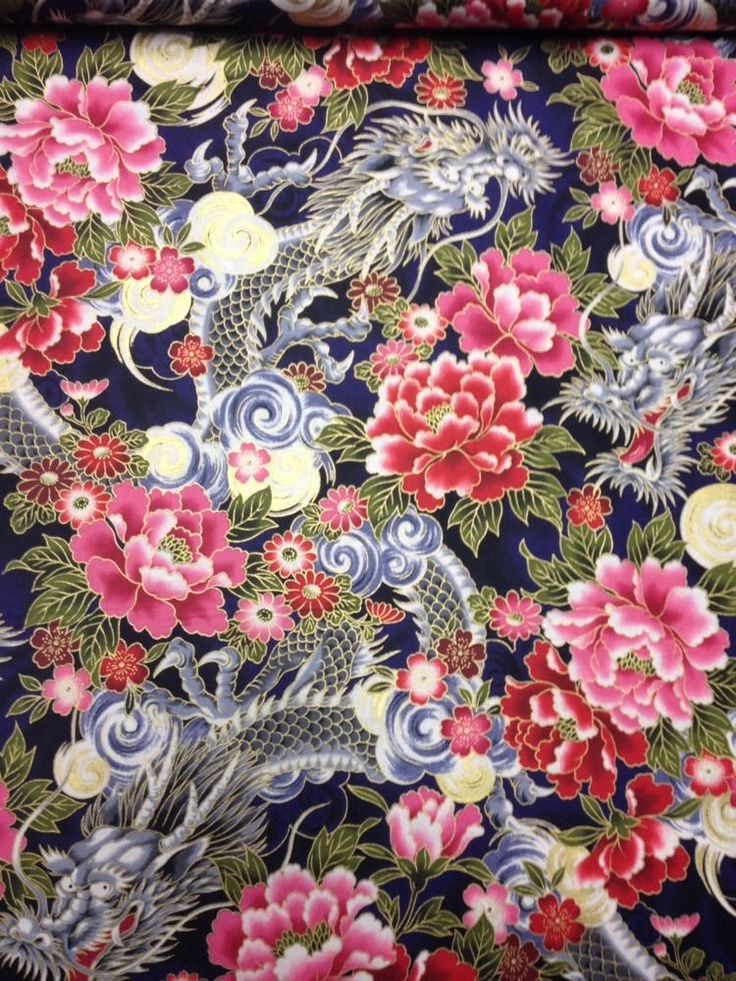CS250 Dragons Asian Flowers Tattoo Japanese Art Cotton …