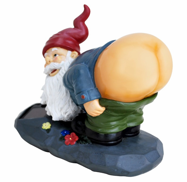 Dirty Little Lawn Gnome! This Gnome’s ass is solar-powered so it …