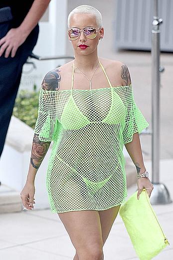 Busty Amber Rose in see through yellow bikini top by the …