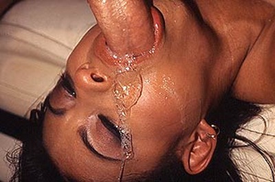 Big black cock in her mouth makes slut gag