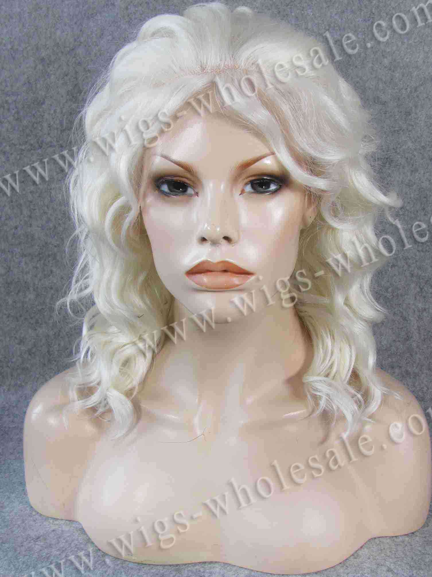 … Bleach Blonde Color Curly Medium Length Synthetic Lace Front Wig for