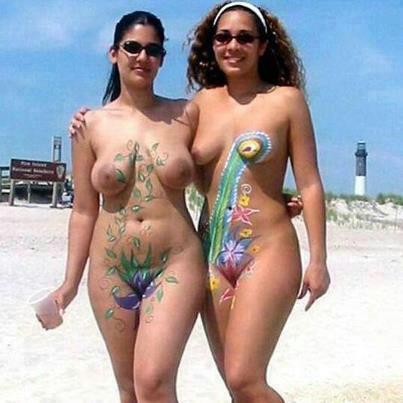 Amateur nudists and theirs beach body painting | at nudist beach