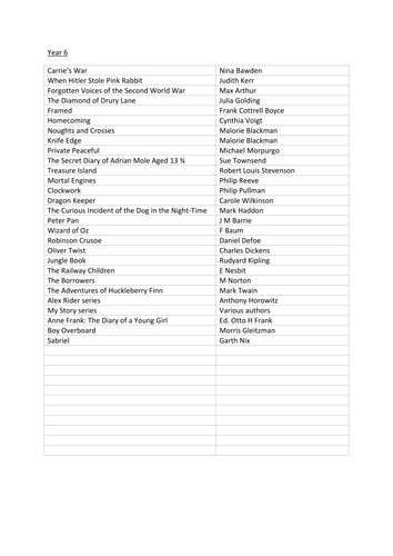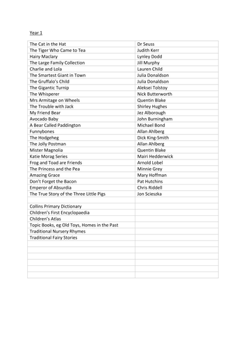 Recommended reading lists for year groups by carolnightingale …
