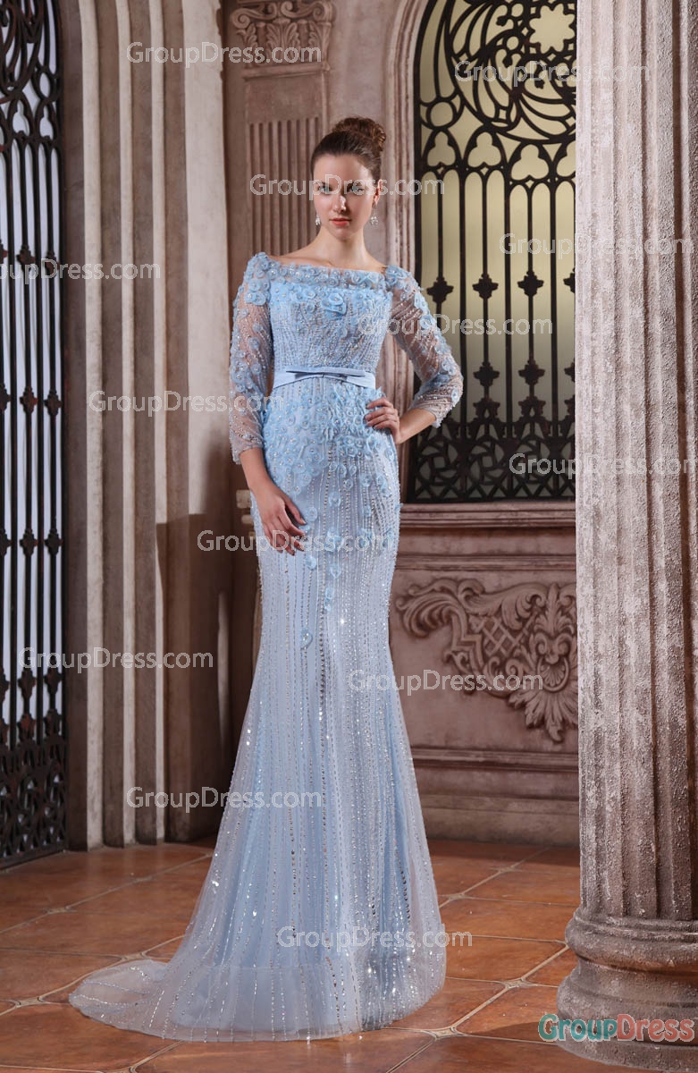 Baby Blue Flower Long Sleeve Mermaid Gorgeous Evening …