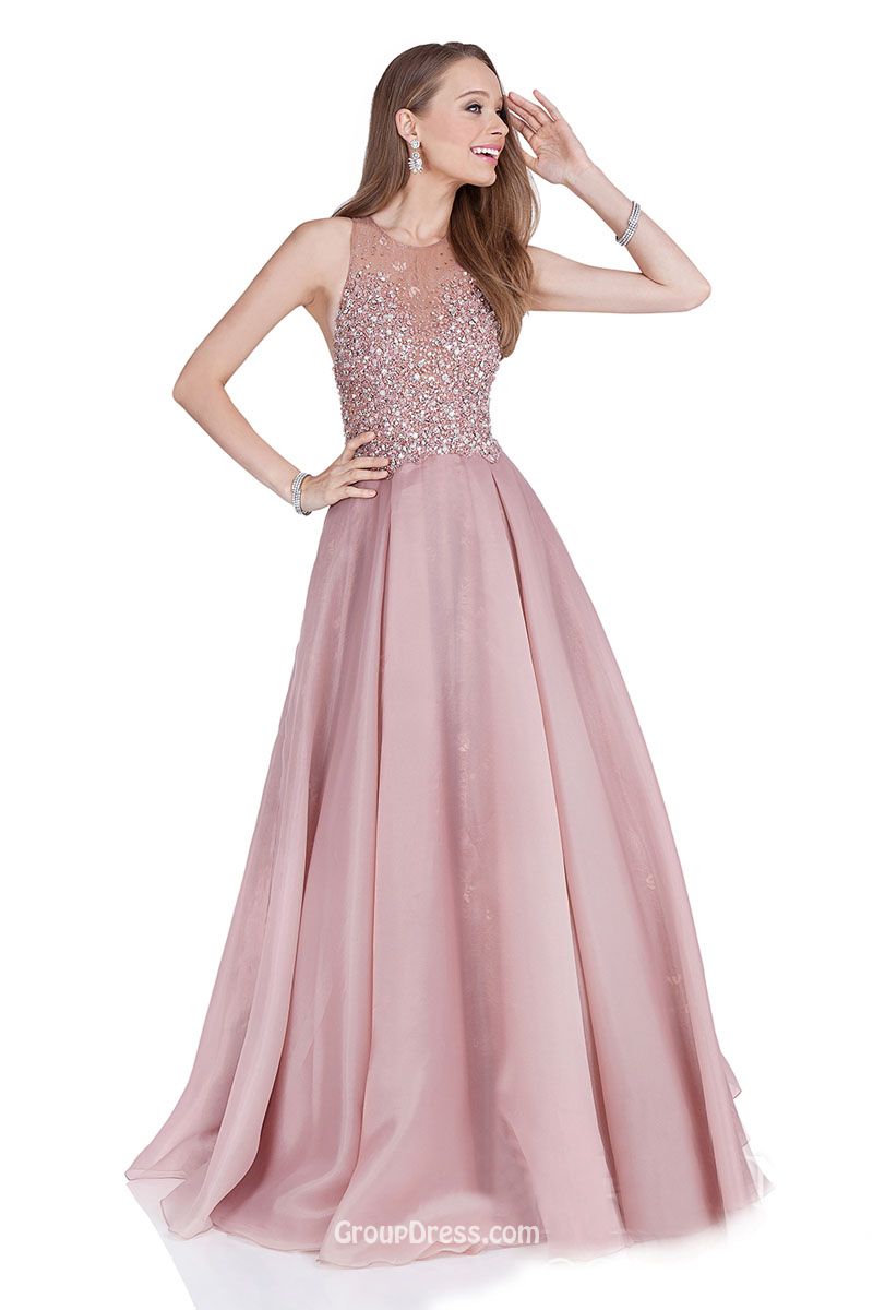Illusion Neckline Beaded Rose Organza Elegant Long A-line …