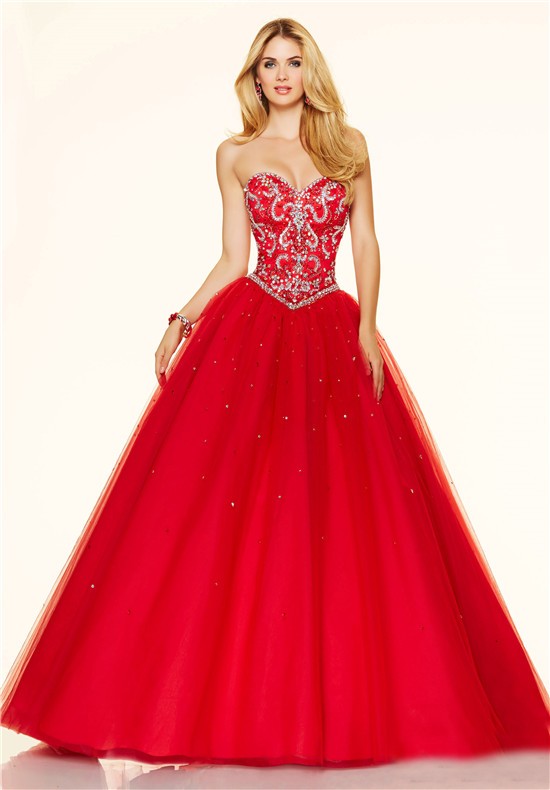 Stunning Ball Gown Strapless Corset Red Tulle Beaded Prom …