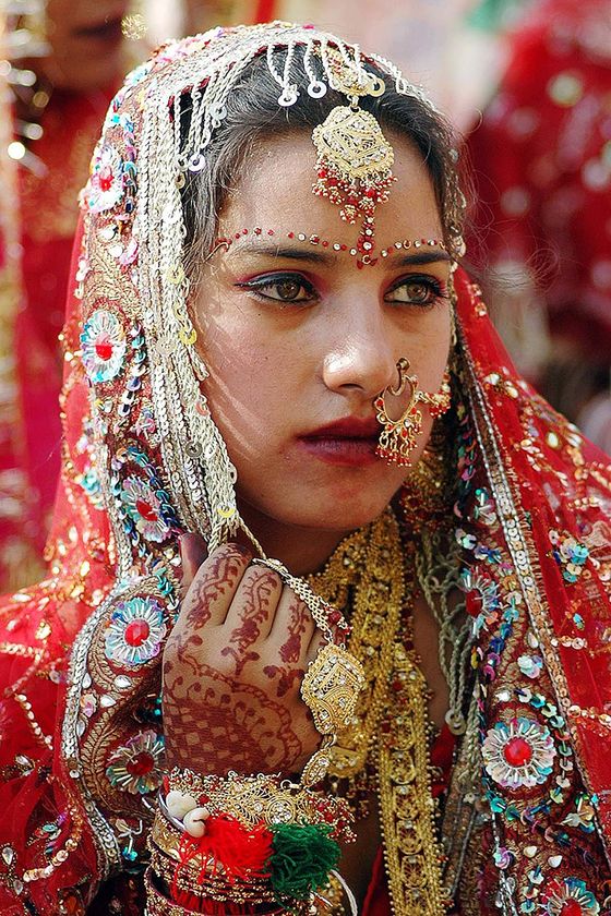 An Indian bride at a mass wedding. Whether Hindu, Christian, Buddhist …