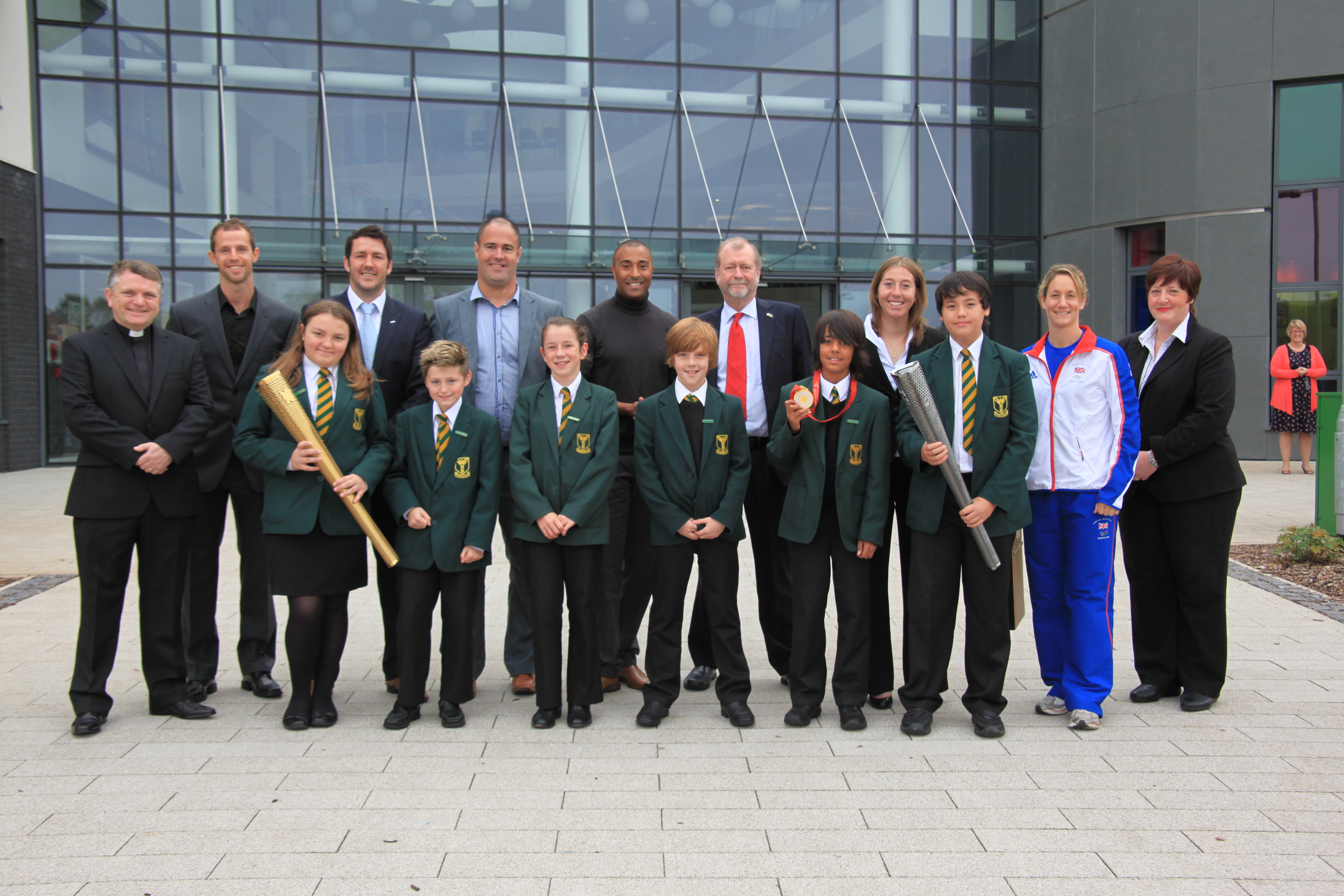 Headteacher, deputy Headteacher and school pupils with Sports …