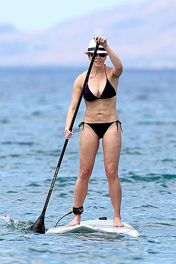 Chelsea Handler shows deep cleavage in black bikini at a …