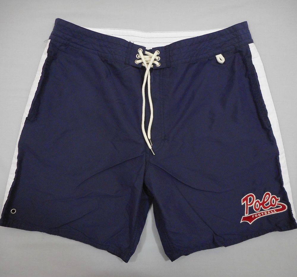 RALPH LAUREN Men’s “Polo Football” Blue Cotton/Nylon Swim Shorts (36 …