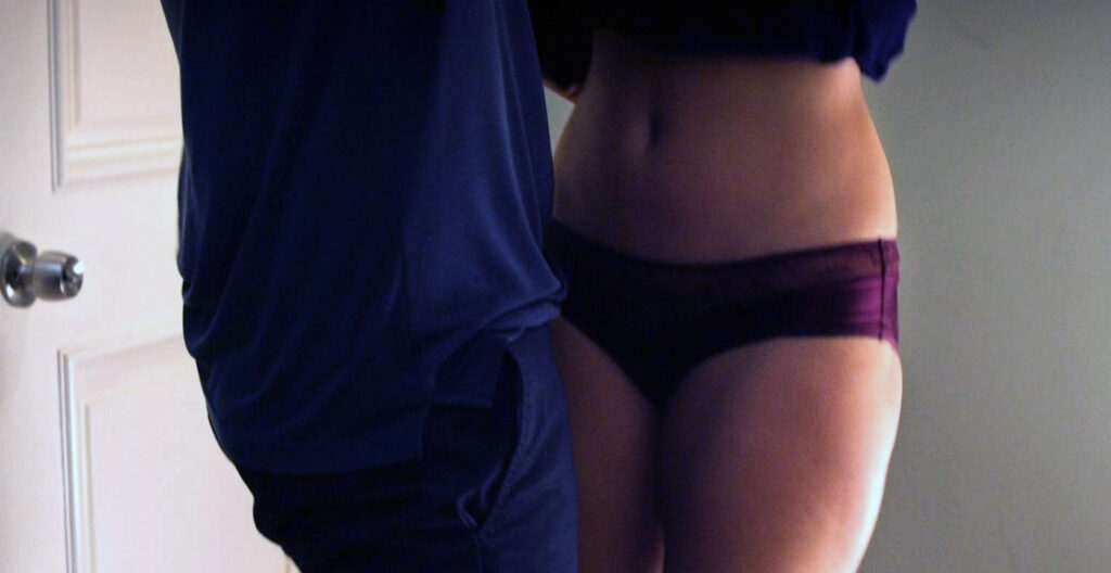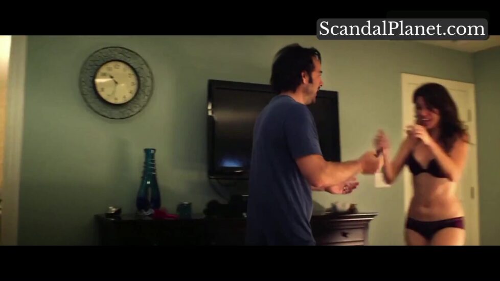 Courtney Henggeler is having sex with a man in a bedroom. She is in her underwear and at once he rushes to get a condom. Then she is helping him to put it on, and then she lies back while they have sex, showing her cleavage and having her bra lift up considerably from her chest. Suddenly, the condom breaks, and he connives to get her to fall into his arms.