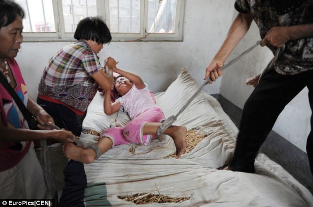 Shocking images of Chinese girl, 12, tied to her bed by …