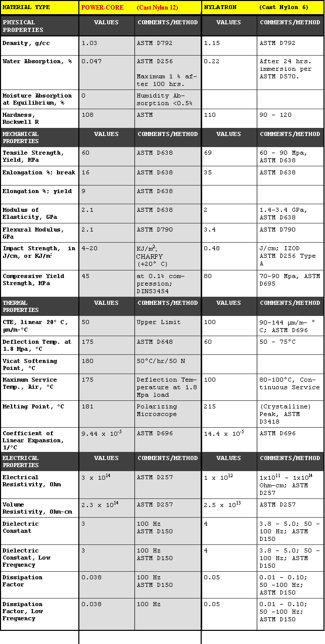 Cast Nylon 12 vs Cast Nylon 6 vs Gravity Cast PowerCore