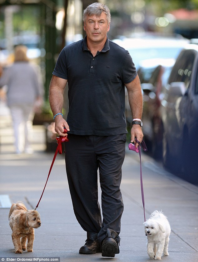 New dad Alec Baldwin takes dogs for walk as Hilaria stays …