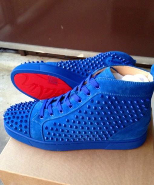 Shorts: red bottom louboutin royal blue spikes, shoes …