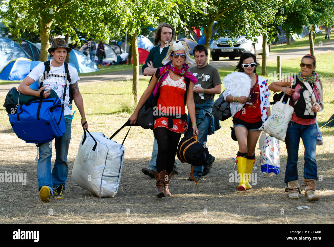group of music festival goers packed up and going home Stock Photo …
