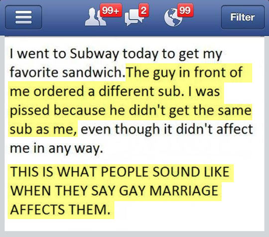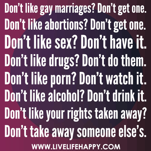 Don’t like gay marriages? Don’t get one. Don’t like aborti …