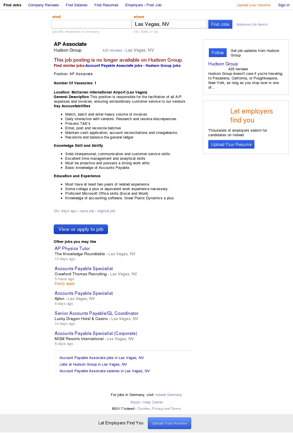 Get Jobs Information in JPG Images Format for Hudson Group Recruiting For AP Associate in Nevada …
