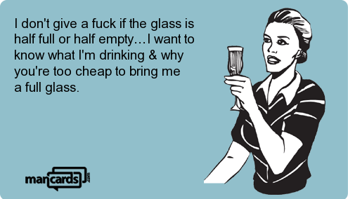don’t give a fuck if the glass is half full or half empty…I want …
