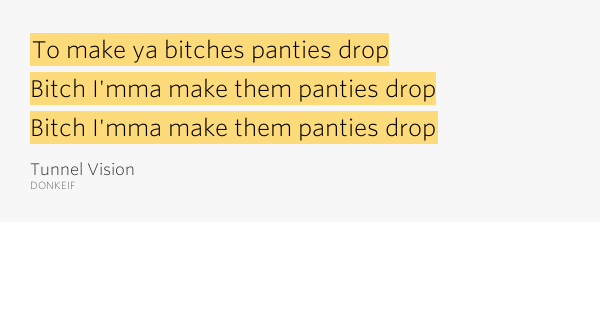 … make them panties drop / Bitch I’mma make them panties drop – Tunnel