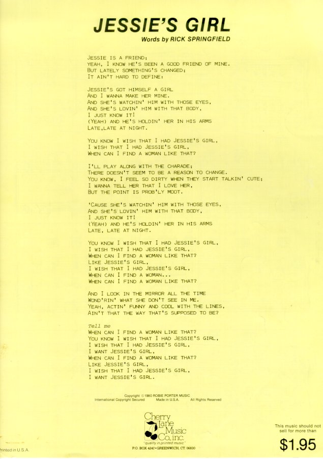 … of “Jessie’s Girl” by Rick Springfield: A Sonnet | Versed Dates