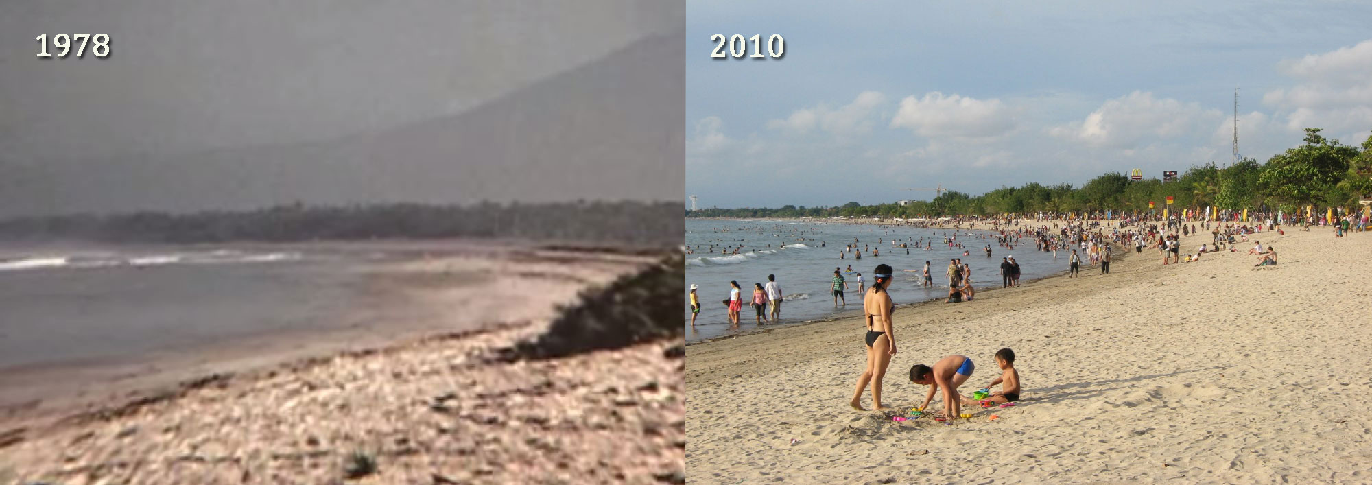 Kuta Beach looking west: then and recently. Kuta Beach: then and now …