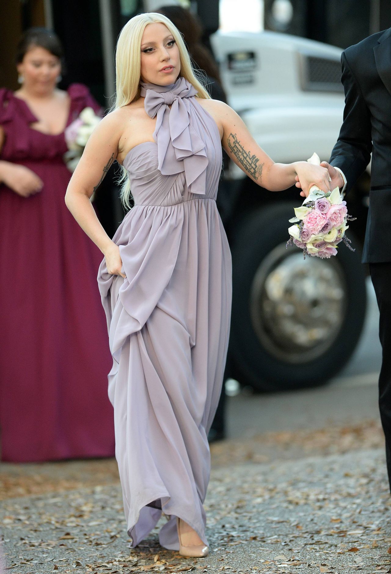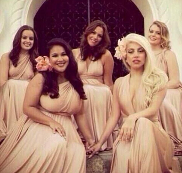 Lady bridesmaid: Gaga dresses in a pale pink halter dress for her best …