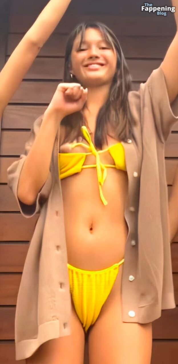 Actress Lily Chee flashes her nude tit while dancing in a two-piece yellow bikini.
