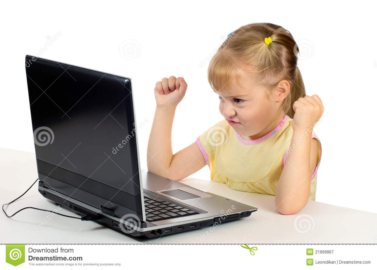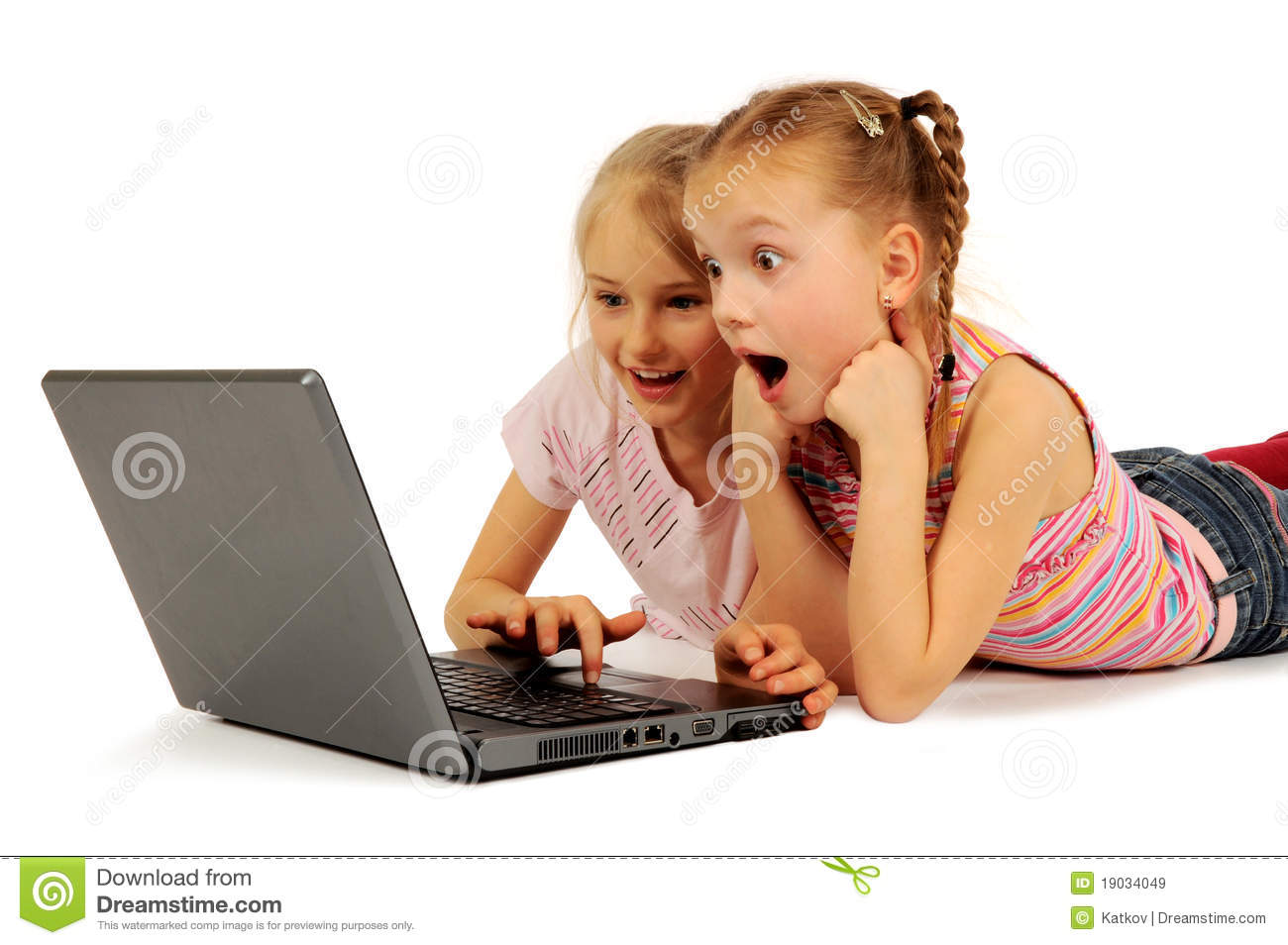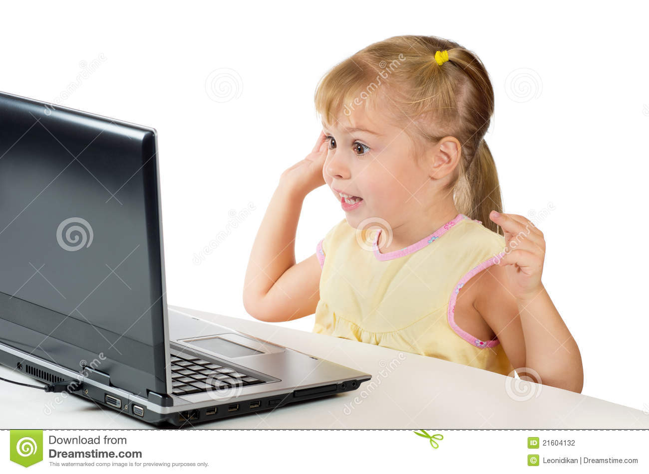 Astonished Little Girl With Her Computer Stock Photo – Image: 33997520
