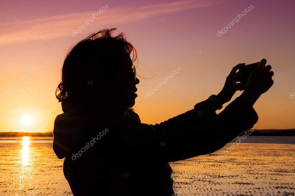 Download – Beautiful young woman taking picture of herself, selfie, on …