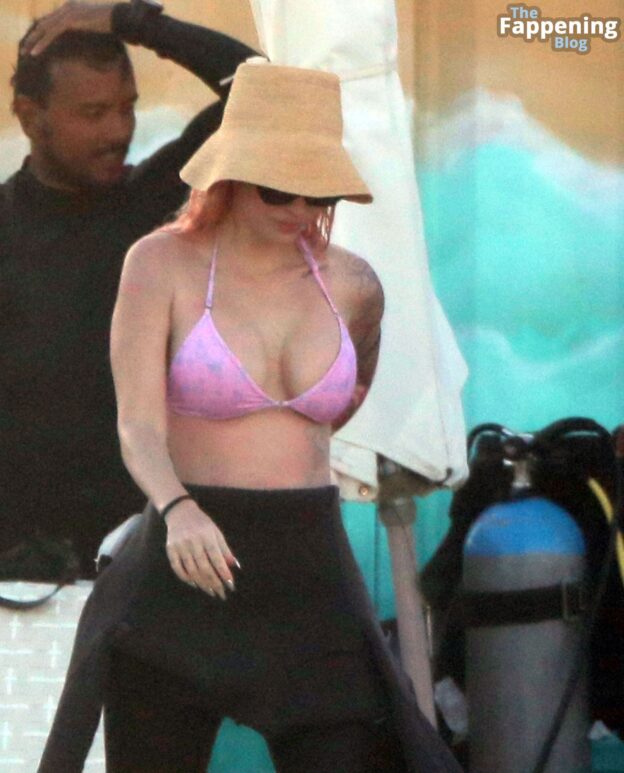 Megan matched her new pink hair color to her bikini that she wore under her snorkeling gear! MGK ironically covered up his new blackout chest tattoos in a FULL BODY wetsuit while joining in on the couple’s activities. In some snaps, MGK shows off his regular tattoos on his back after he unzipped.