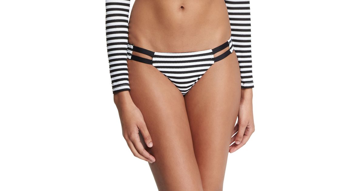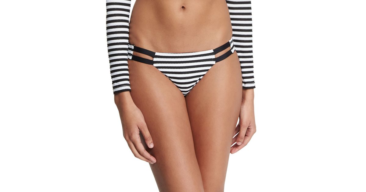 Vitamin a Neutra Striped Hipster Swim Bottom in Black …