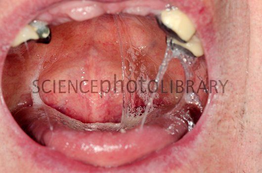 Mucous in mouth after radiotherapy – Stock Image C013/5882 – enlarged …
