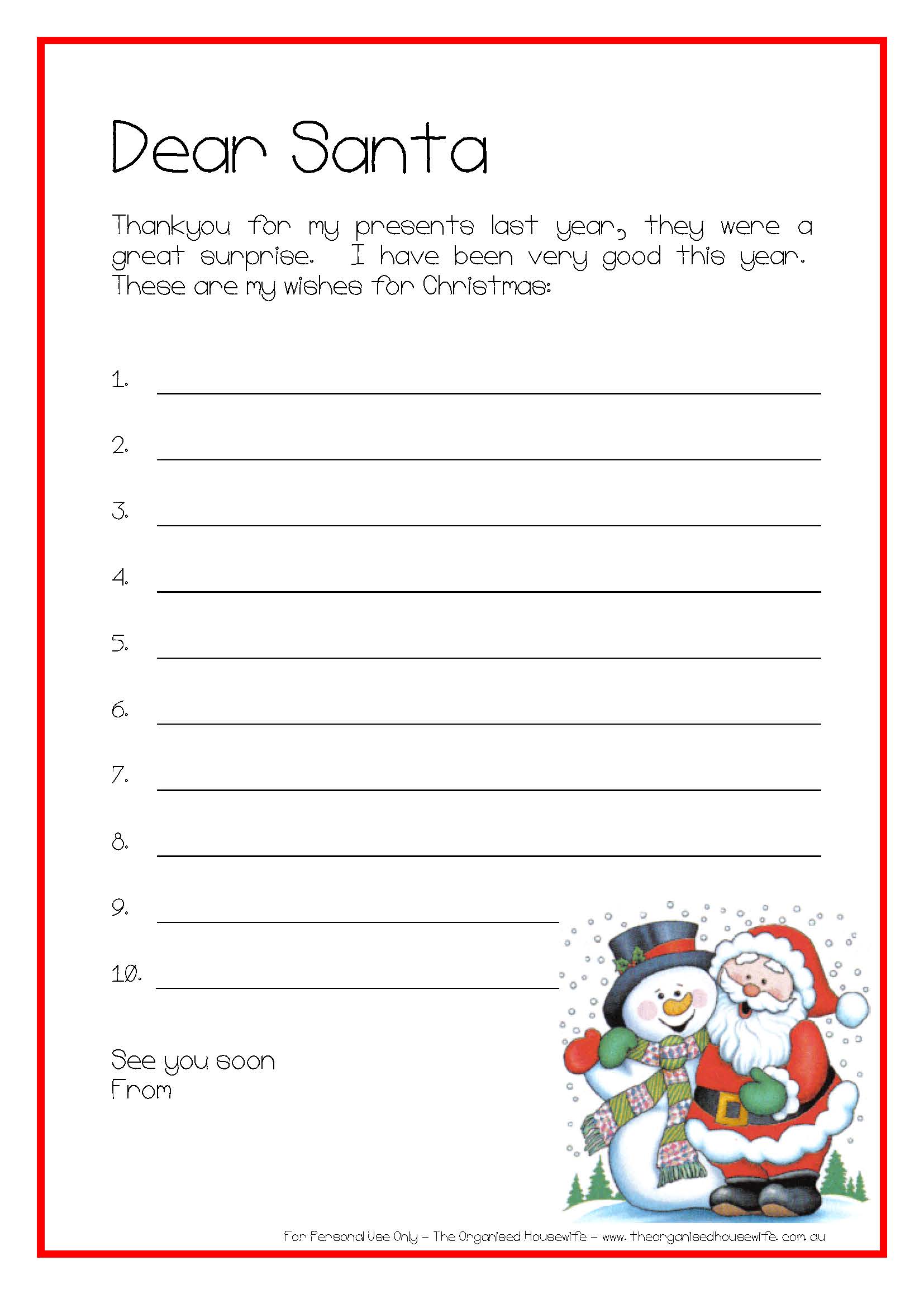Printable: Kids wish list to santa | The Organised Housewife
