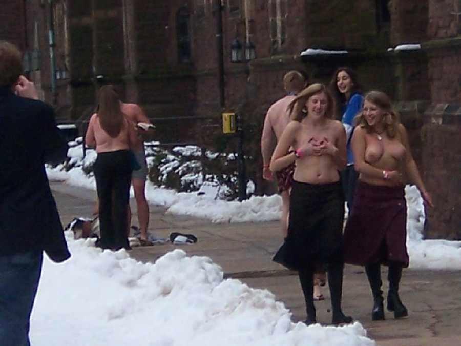 Nude on Campus – girls with boobs out.”