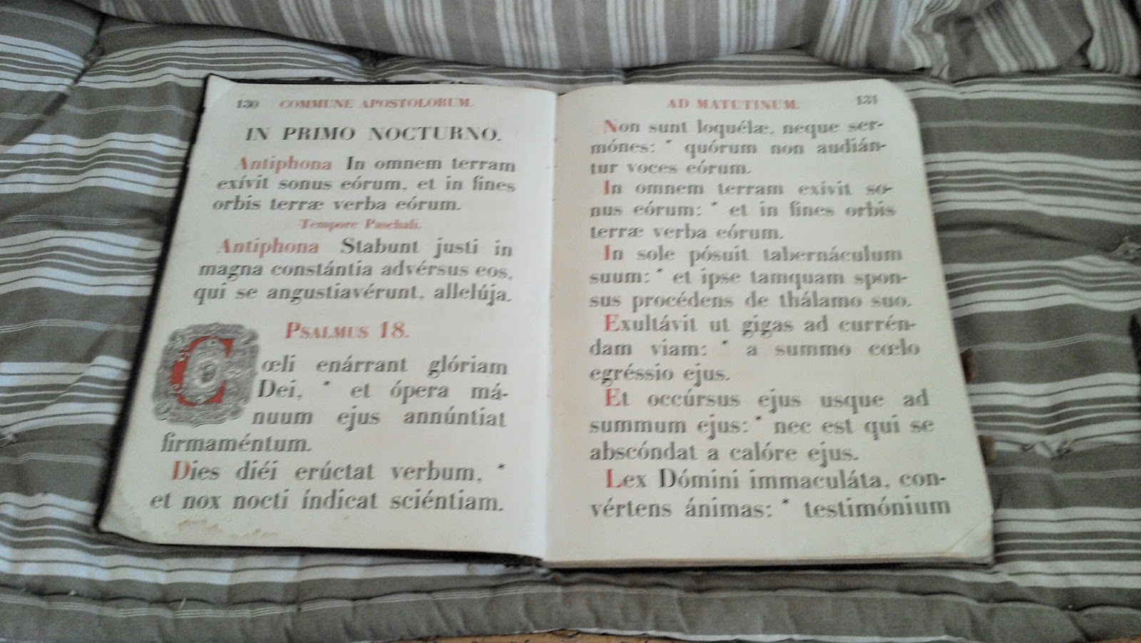 Old Latin book opened with bookmark.
