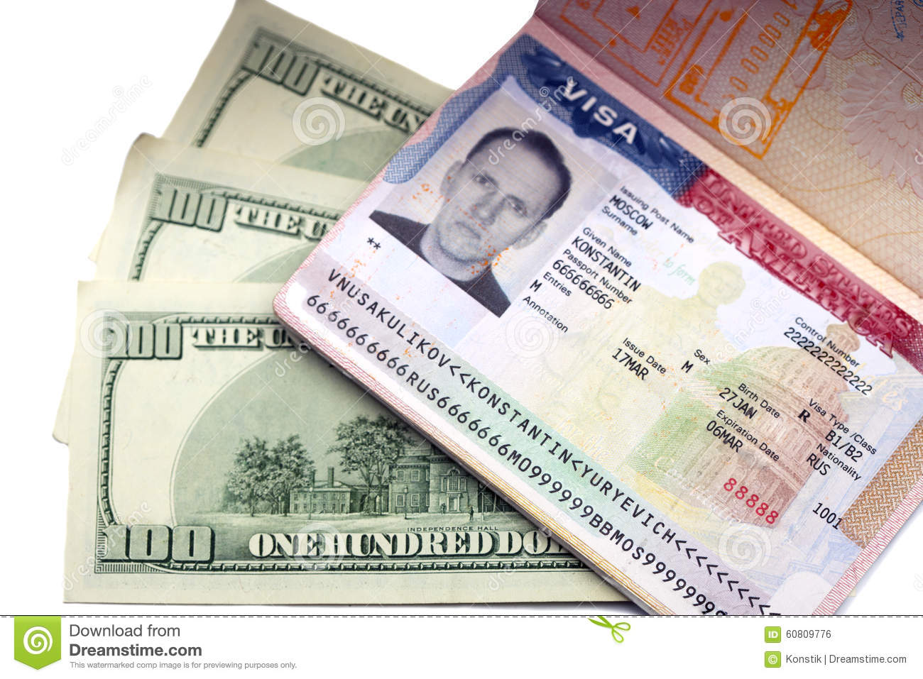 American Visa On Page Of The Russian International Passport And US Dollars Stock Photo – Image …