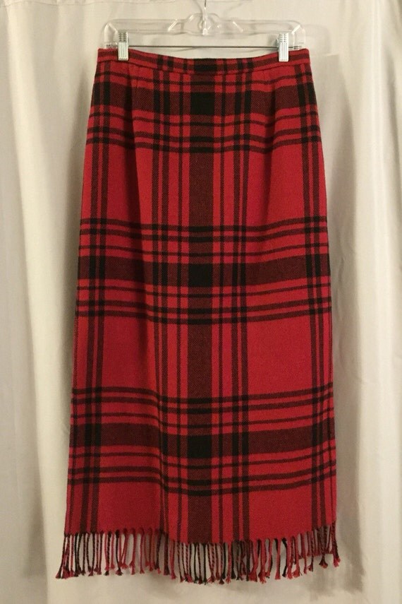 Vintage Red Plaid Pencil Skirt Long Wool Fringe Tartan Women’s 12 or …