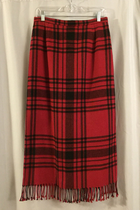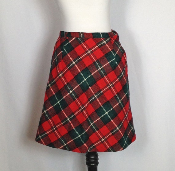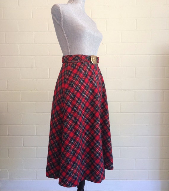 Christmas Red Tartan Plaid Wool Skirt Made In by sweetdaisyscloset