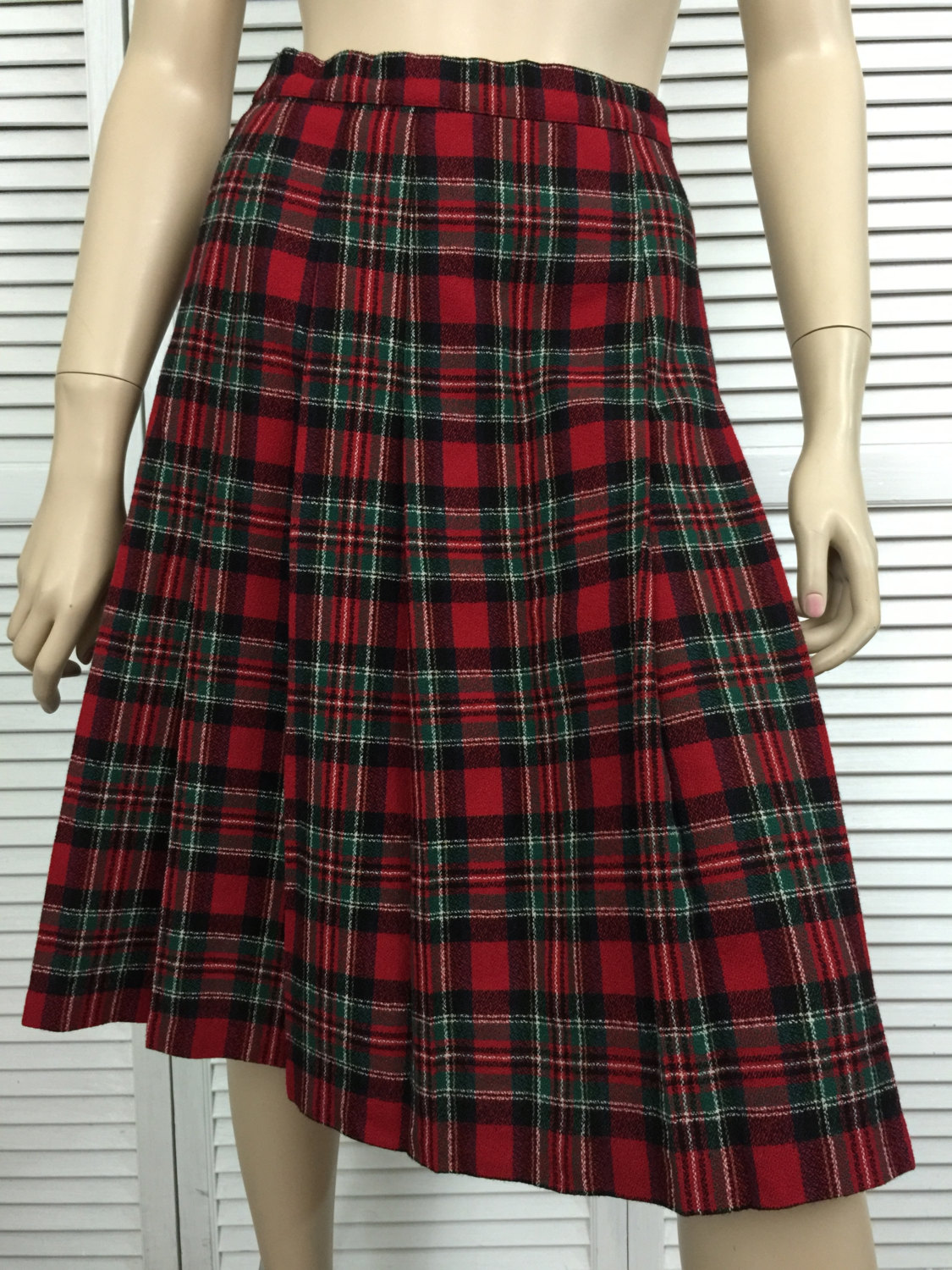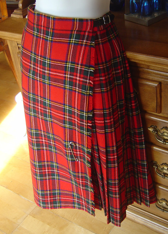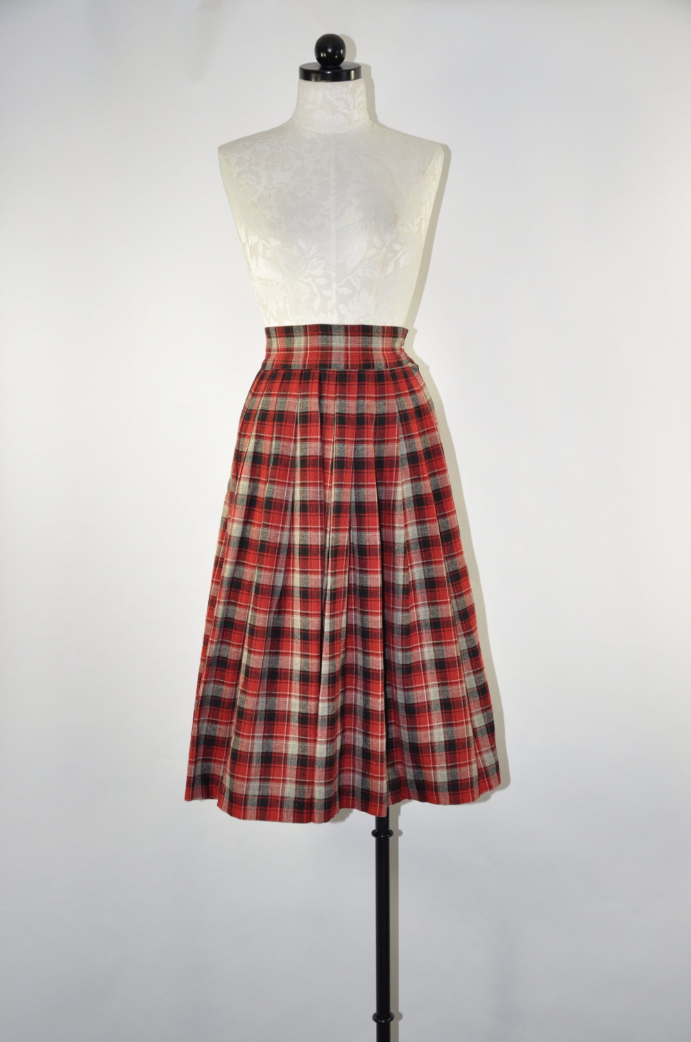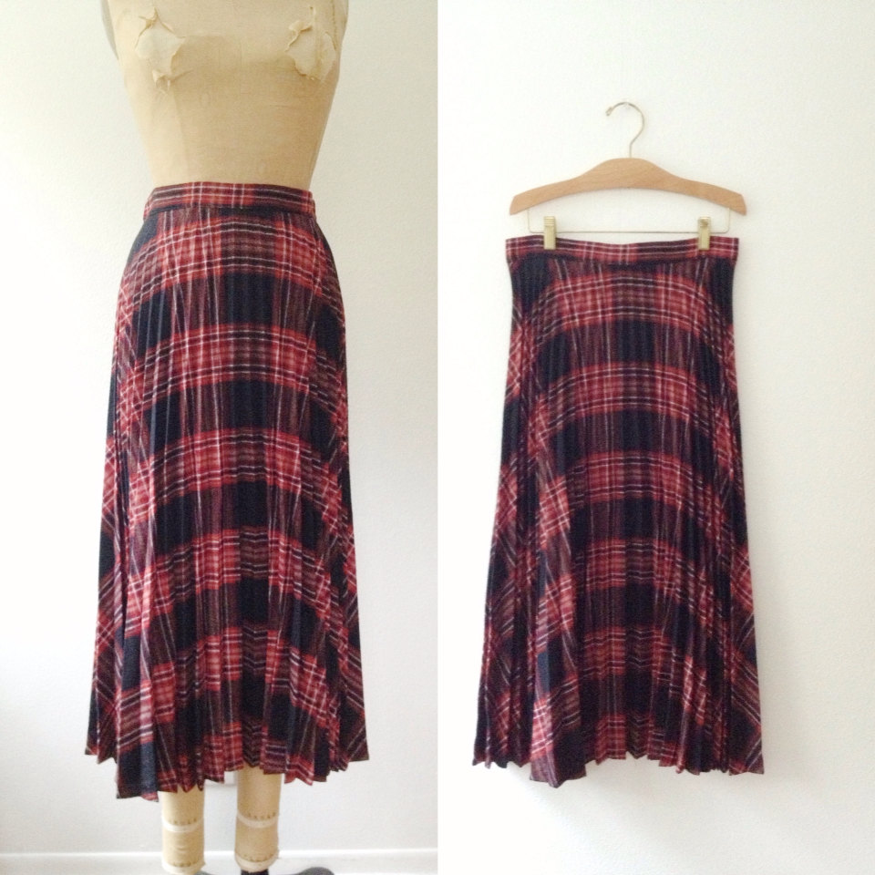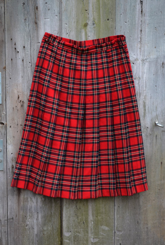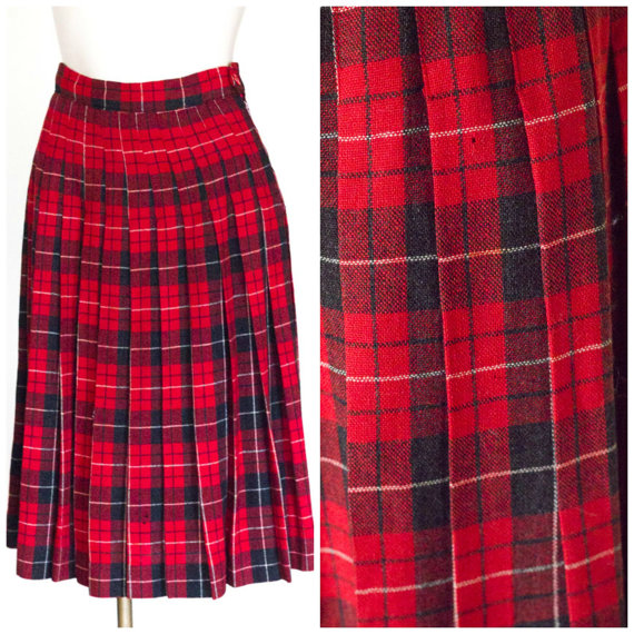 1950s red plaid wool pleated skirt by TimeTravelFashions on Etsy