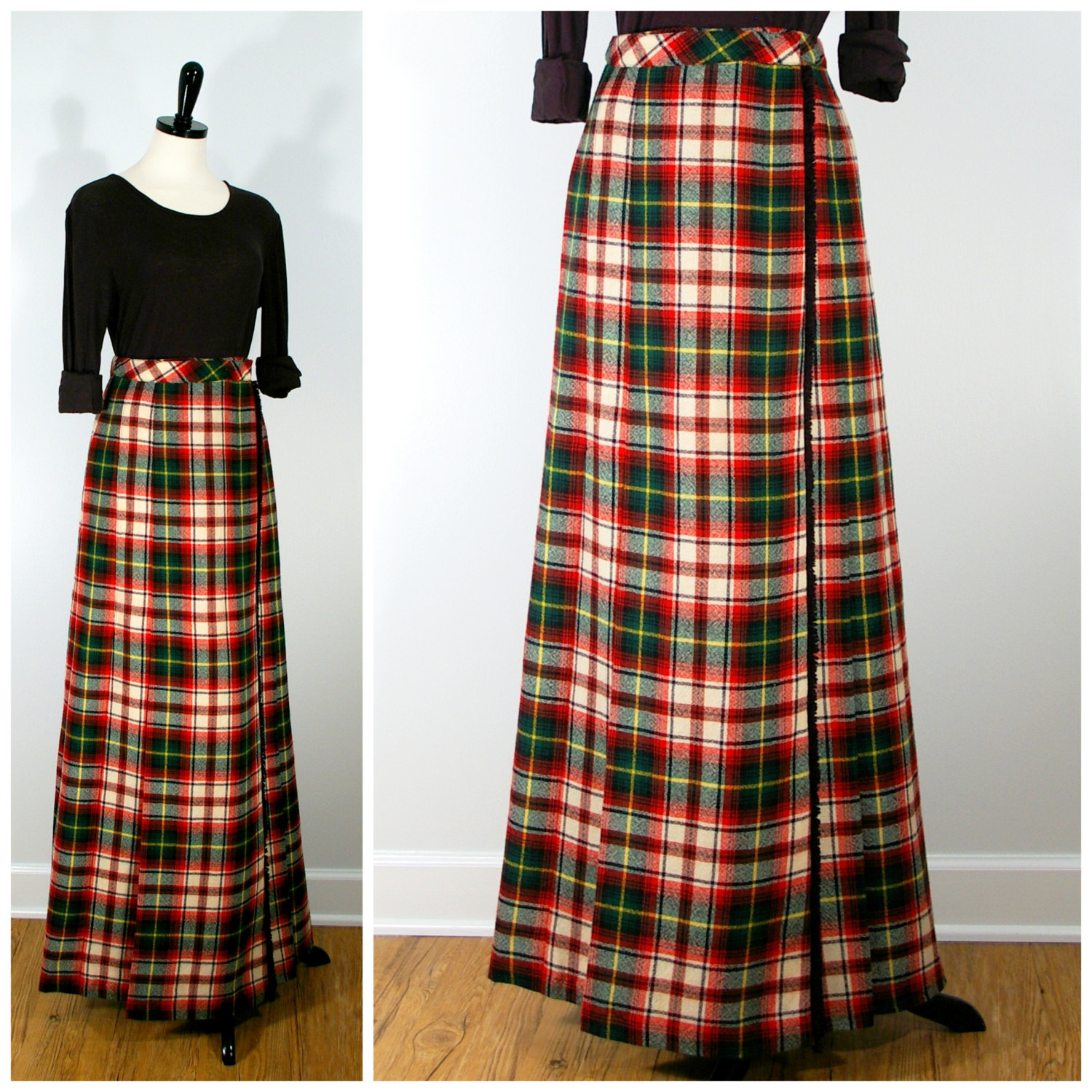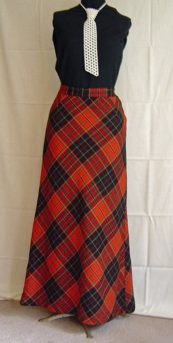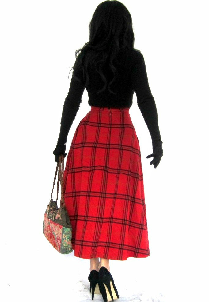 Vintage Red Plaid Wool Long Maxi Skirt by Koret by WhatNots2Like