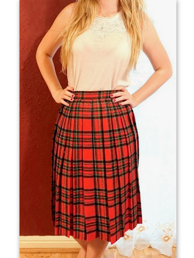 Red Plaid Pleated Skirt Wool Blend by ClassicEndearments