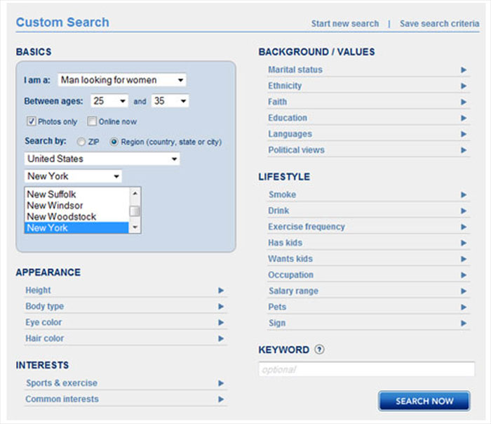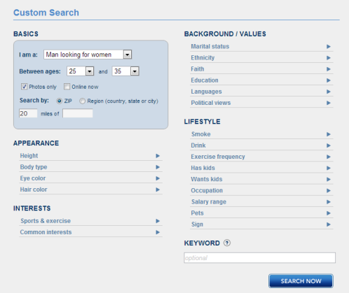 Appearance: height, weight, body type, eye color, hair color Interests …