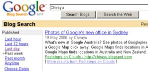 Google Blogsearch now offers the option to sort results by date