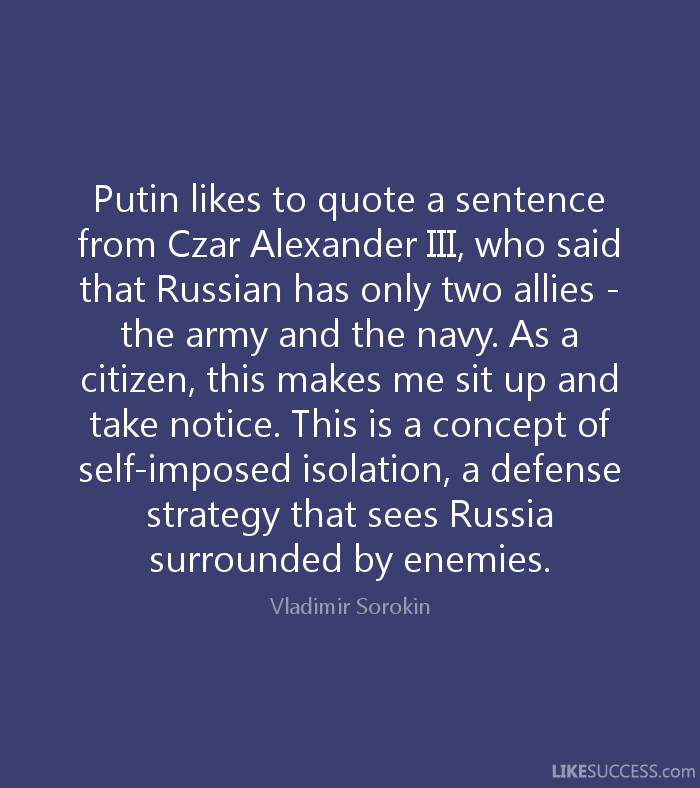 Putin likes to quote a sentence from Cza by Vladimir Sorokin @ Like …